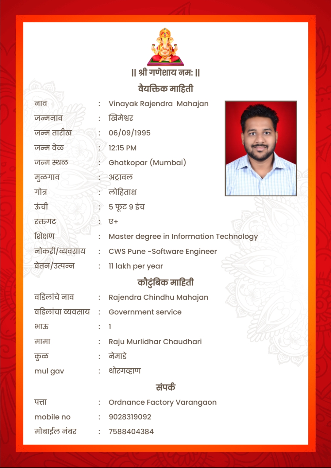 Mobile APP Son / मुलगा Vinayak Rajendra Mahajan