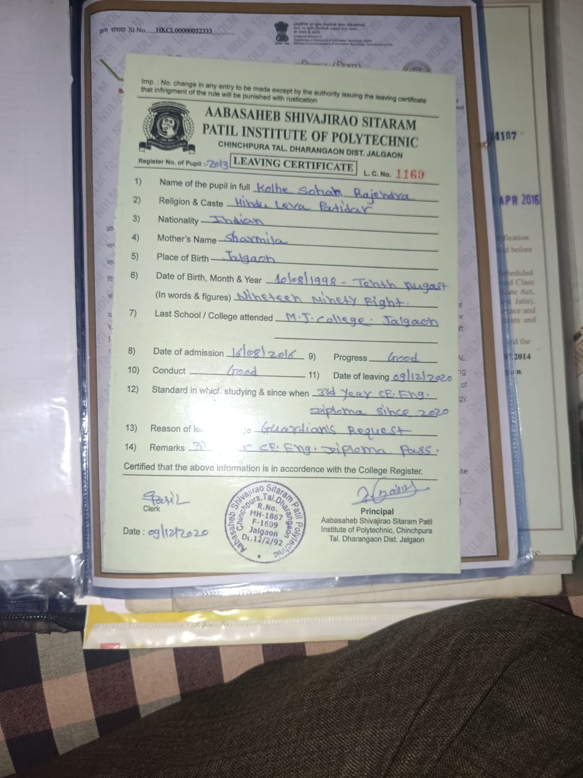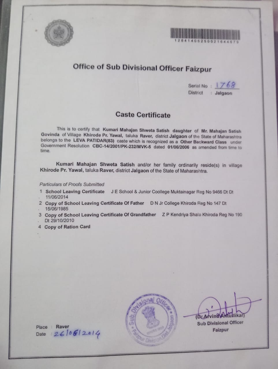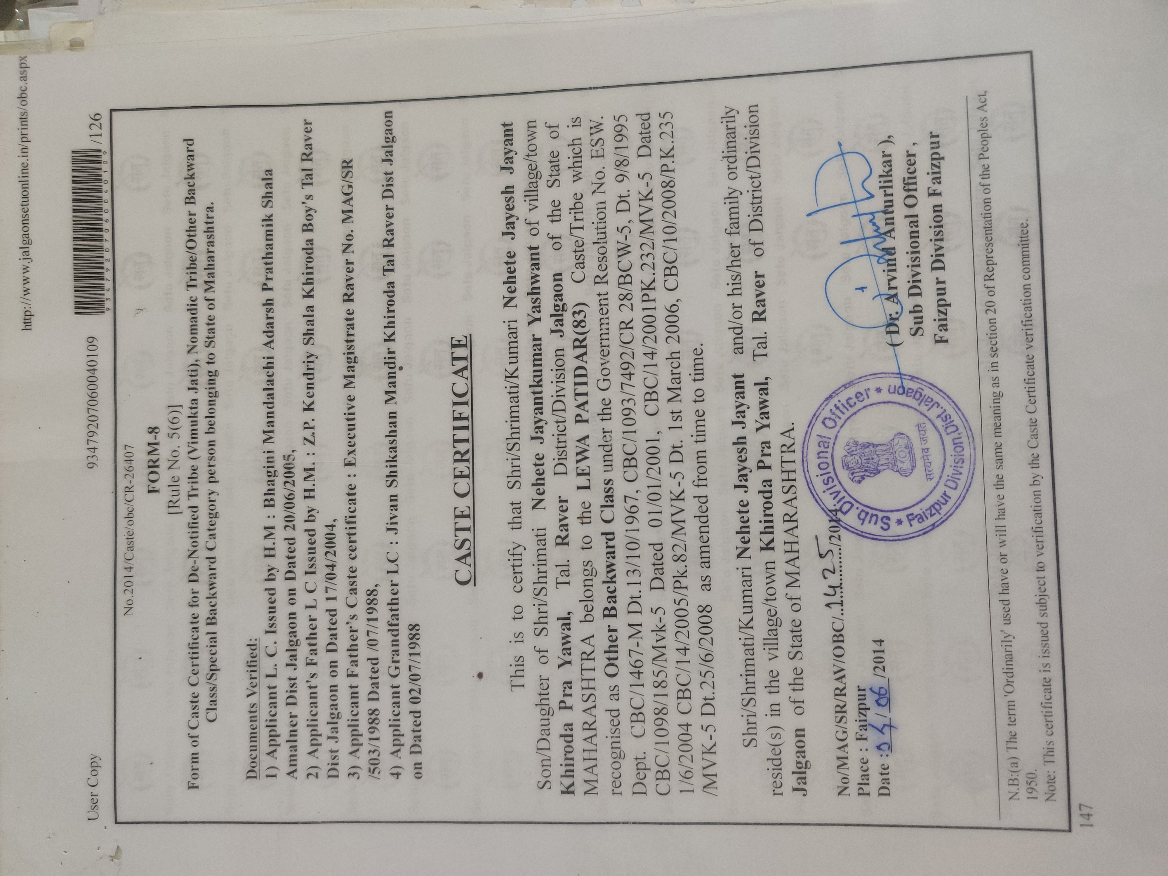 Jalgaon (M Corp.) Reg Fee : 0000-00-00 Inactive