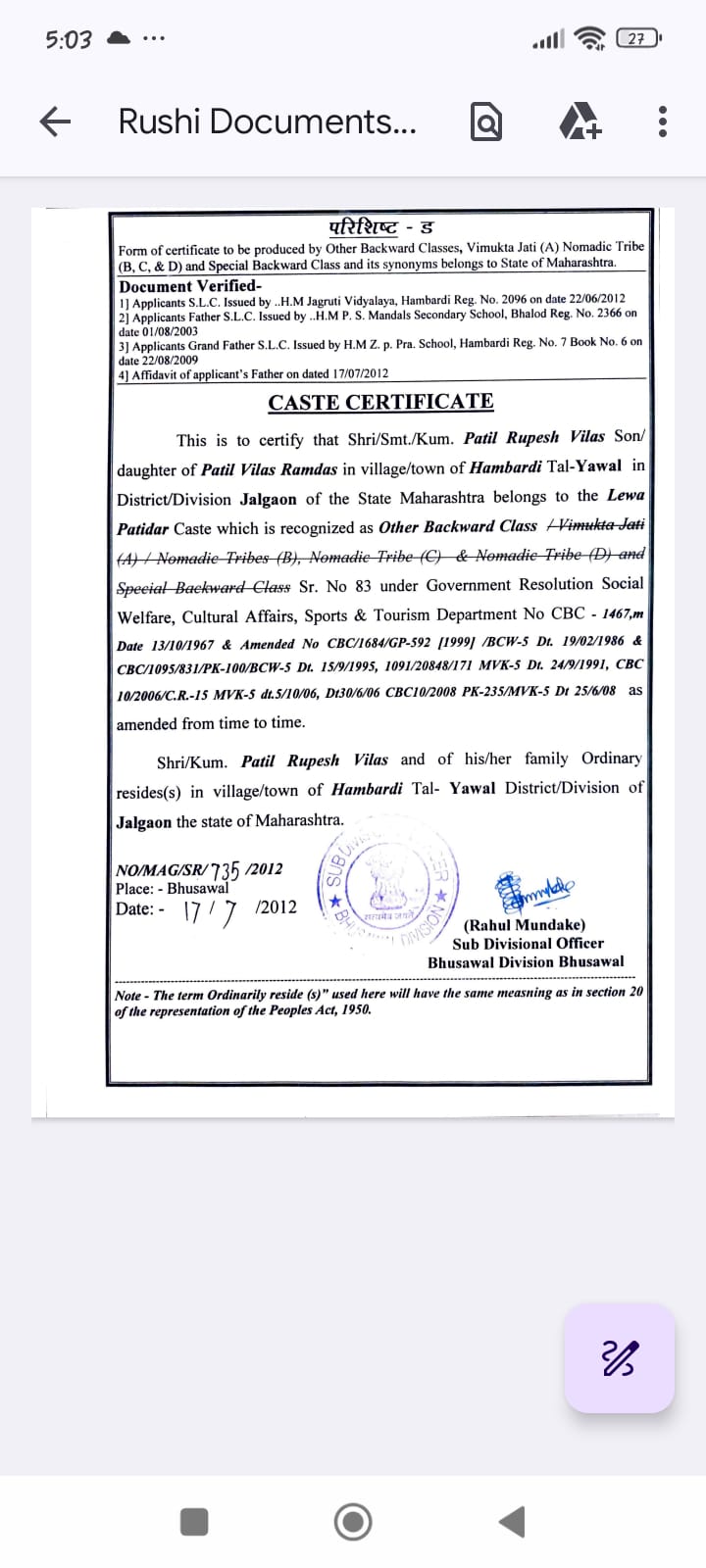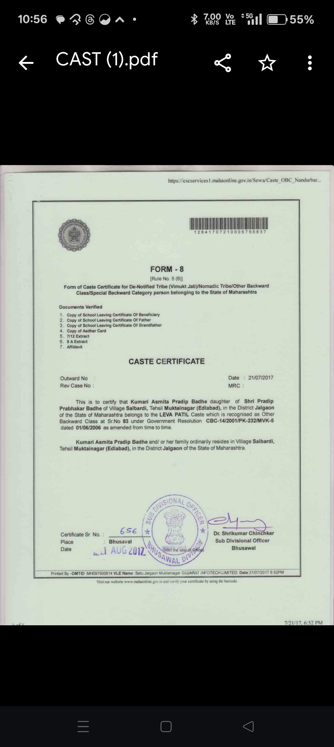 Jalgaon (M Corp.) Reg Fee : 0000-00-00 Inactive