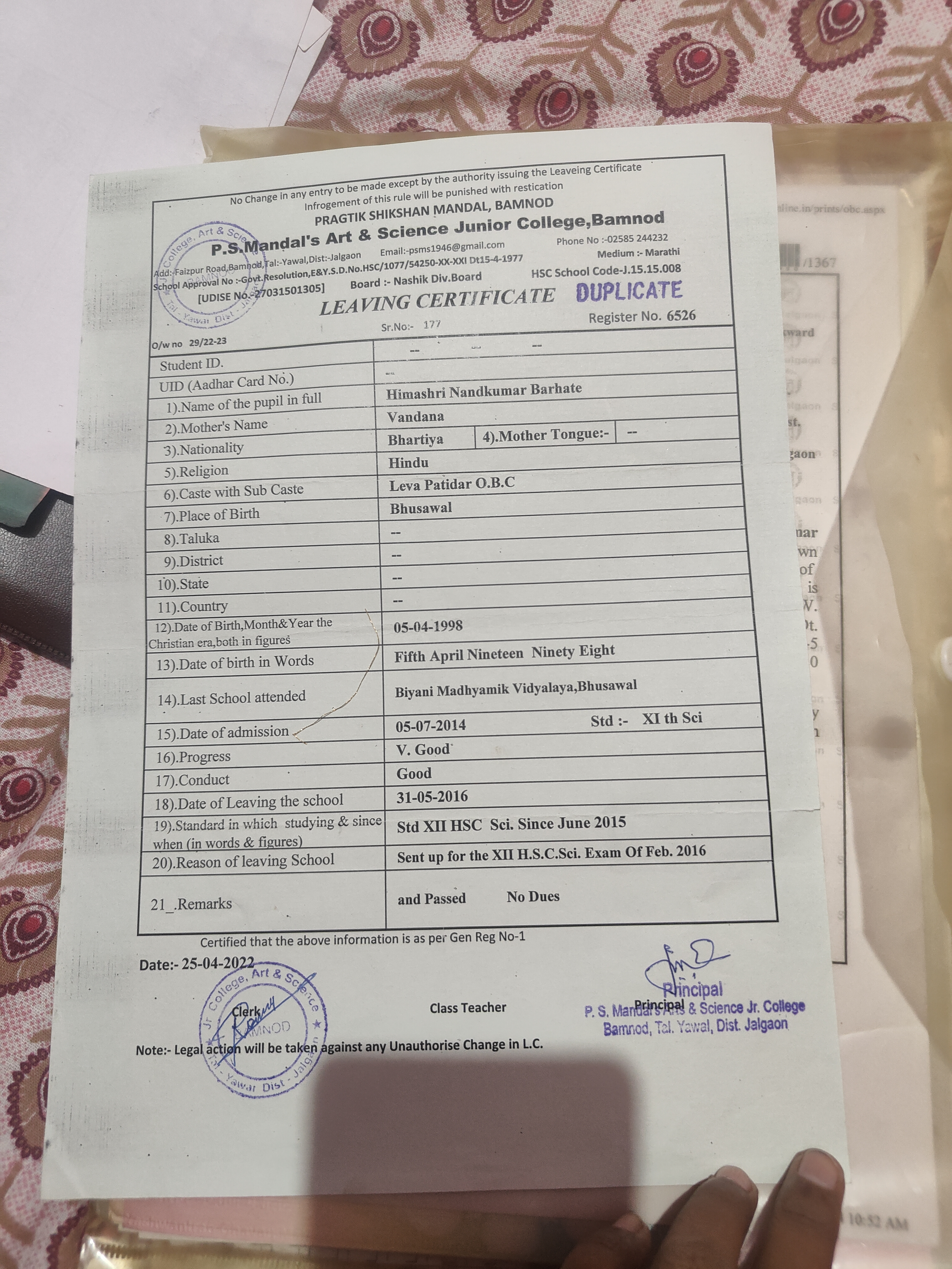 Yawal (rural) Reg Fee : 0000-00-00 Inactive