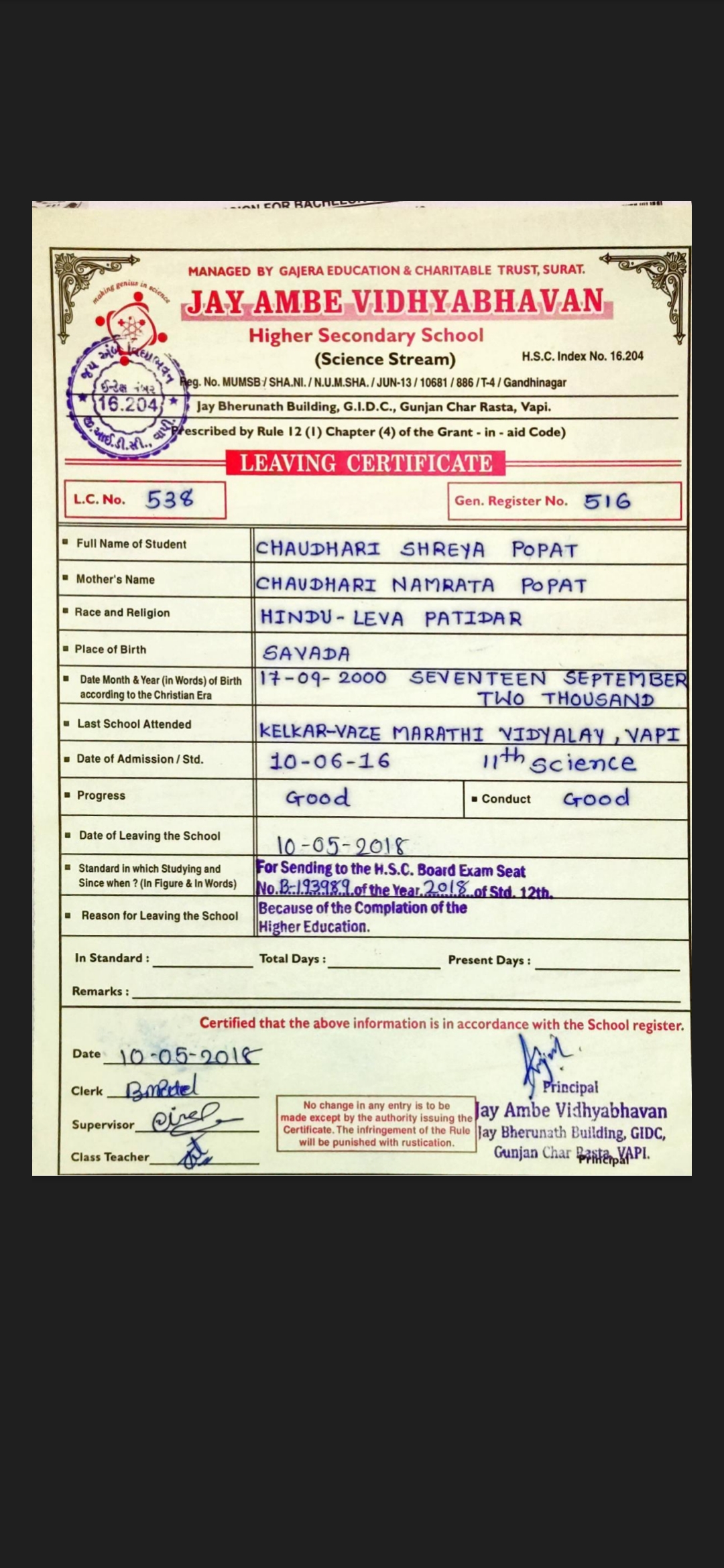 Name : SHREYA CHAUDHARI