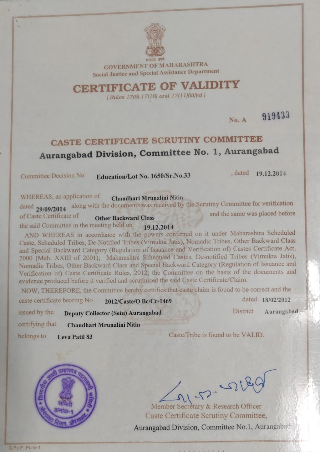 Name : mrunalini chaudhari