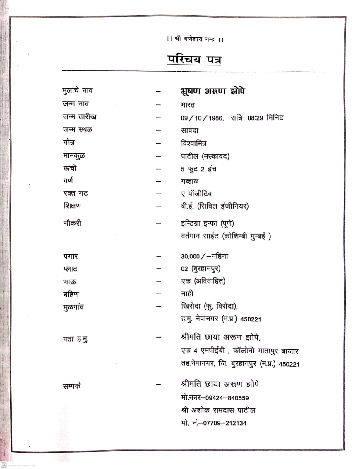 वडिलांची माहिती