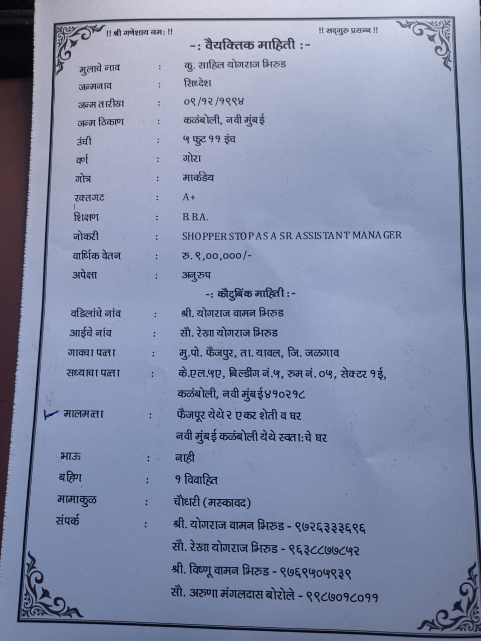 कौटुंबिक माहिती