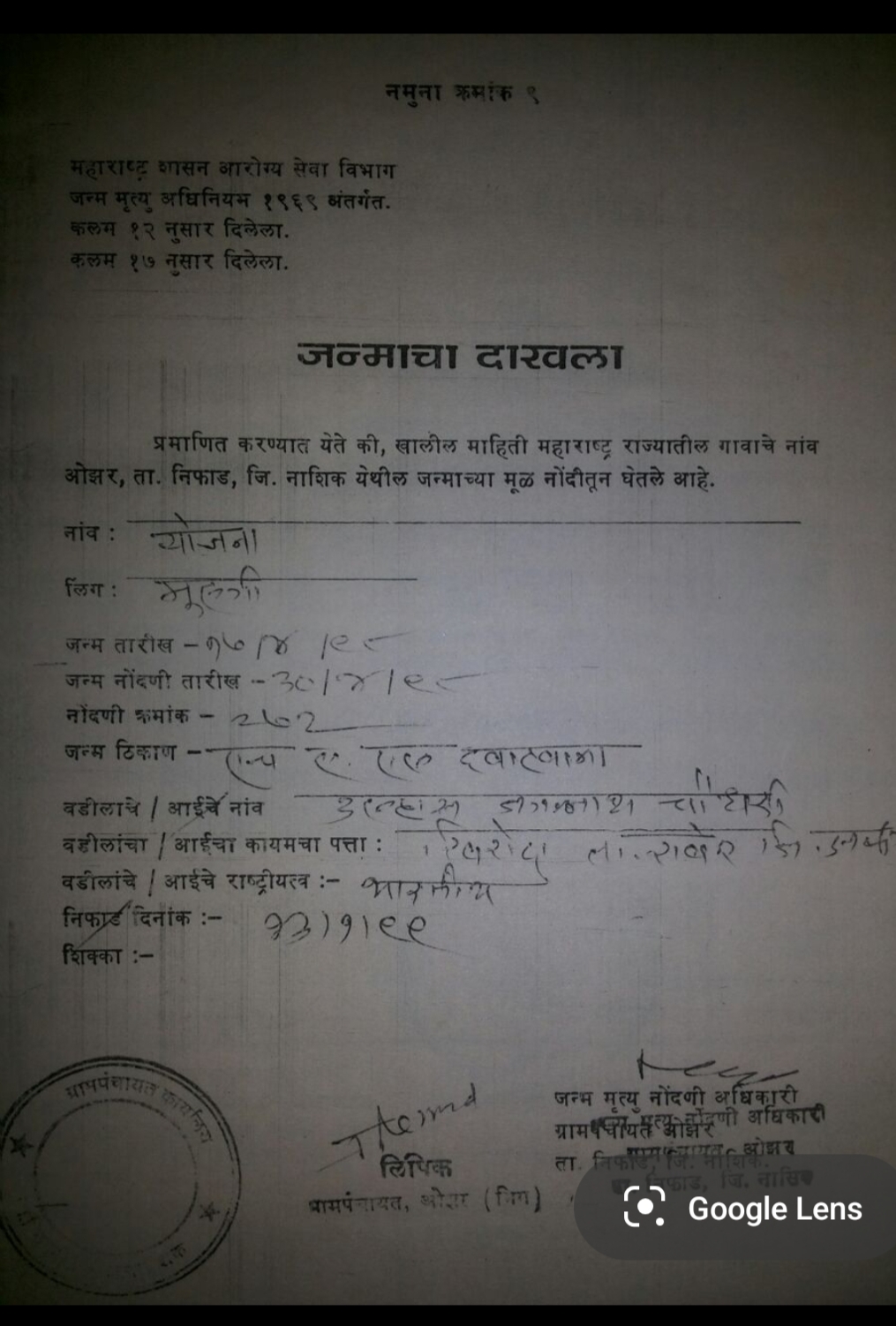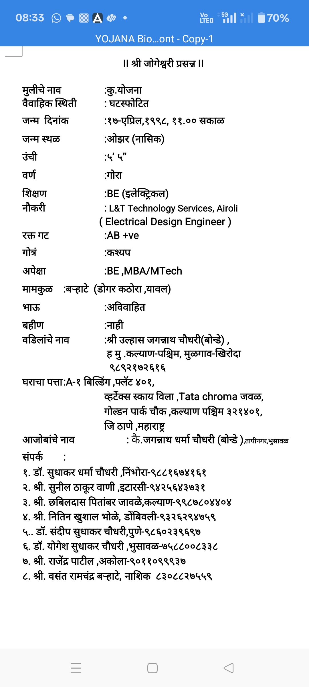 वडिलांची माहिती