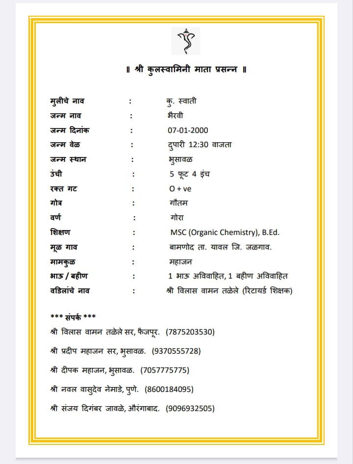 NOT KNOWN / माहिती नाही /माहिती नाही