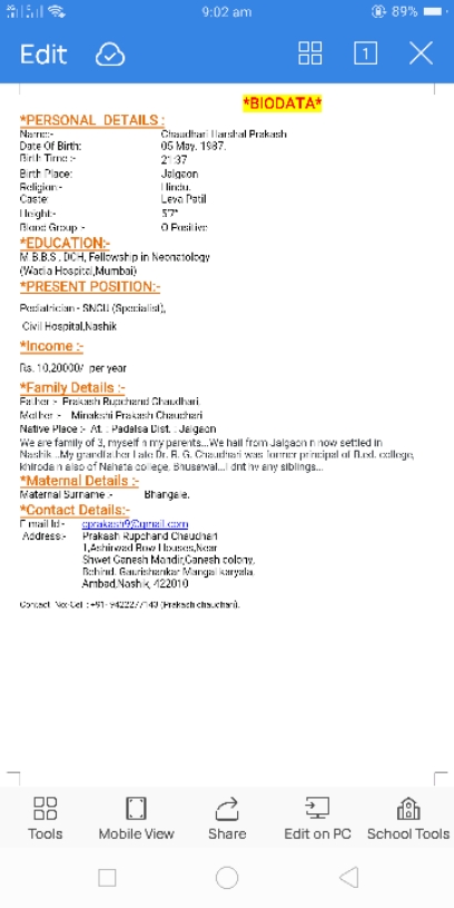 वडिलांची माहिती