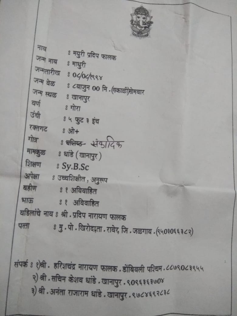 NOT KNOWN / माहिती नाही /माहिती नाही